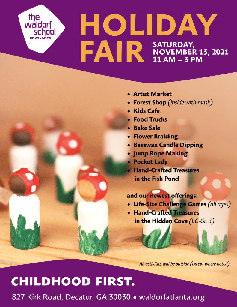 Just for this year (hopefully) the Holiday Fair is for current families, alumni families and prospective families. As well, grandparents, house guests and close friends who help with child-care / pick up and drop off are invited to attend.