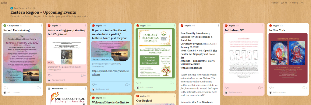 A new online bulletin board has been created for posting events in the Eastern Region of the Anthroposophical Society in America: